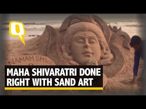 Award winning sand artist - Sudarsan Pattnaik pays tribute to Lord Shiva on Maha Shivaratri by making a sand sculpture at the Puri Beach.