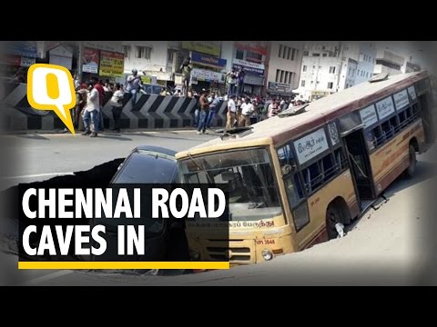 In a shocking incident, a state-run bus and a car met with an accident after Chennai’s prominent Anna Salai caved in on Sunday.